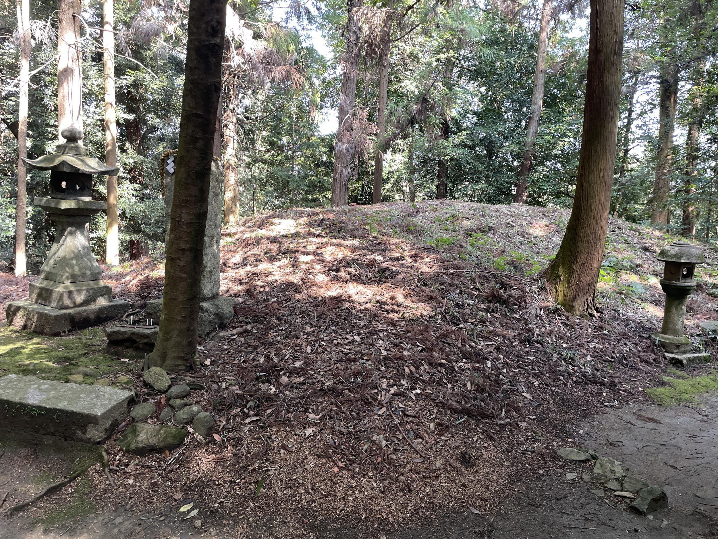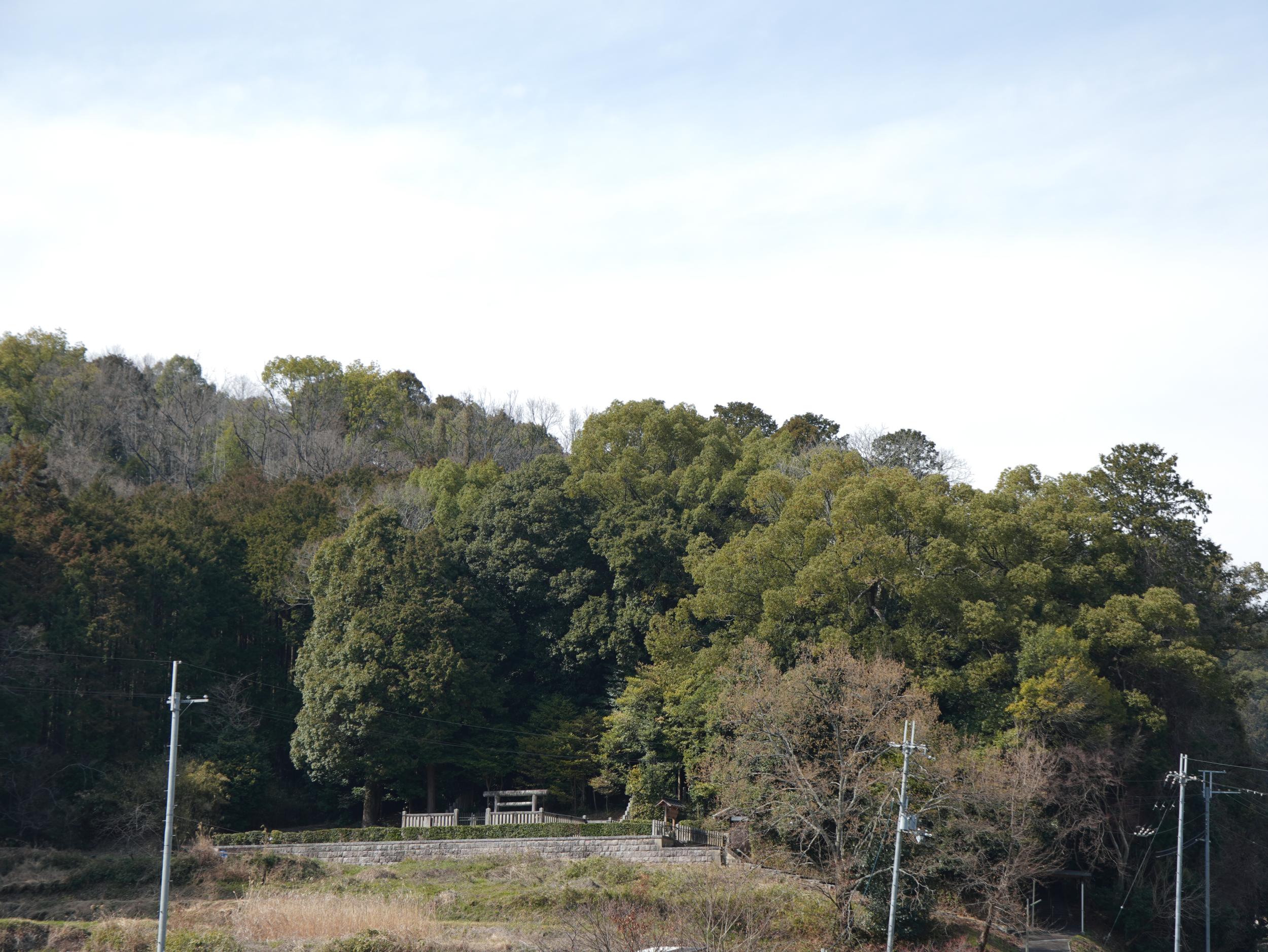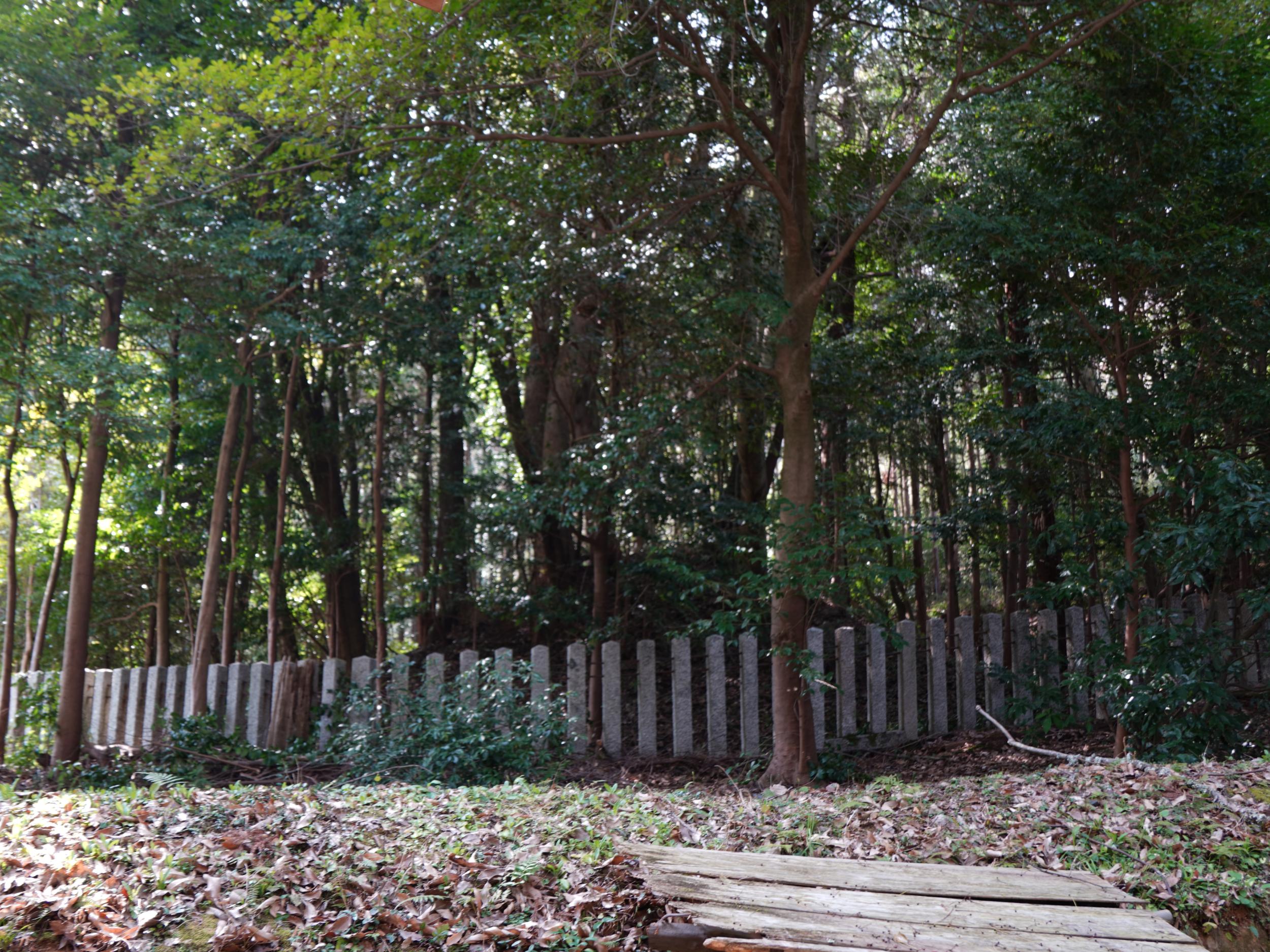 こちらも来村先生の説明で石段のある南向きではなく、踏切から上ってきた東北向きの谷に向かって位置していると分かりました。後述の岡宮天皇真弓丘陵が草壁皇子の陵墓に治定されているのは、明治時代の役人が佐田の村人に尋ねたところ、ここを「草壁さん」と呼んでいたにもかかわらず、立ち退きを命じられるのではないかとおそれ、ここではなくあっち、と答えたためという話はとても興味深い。