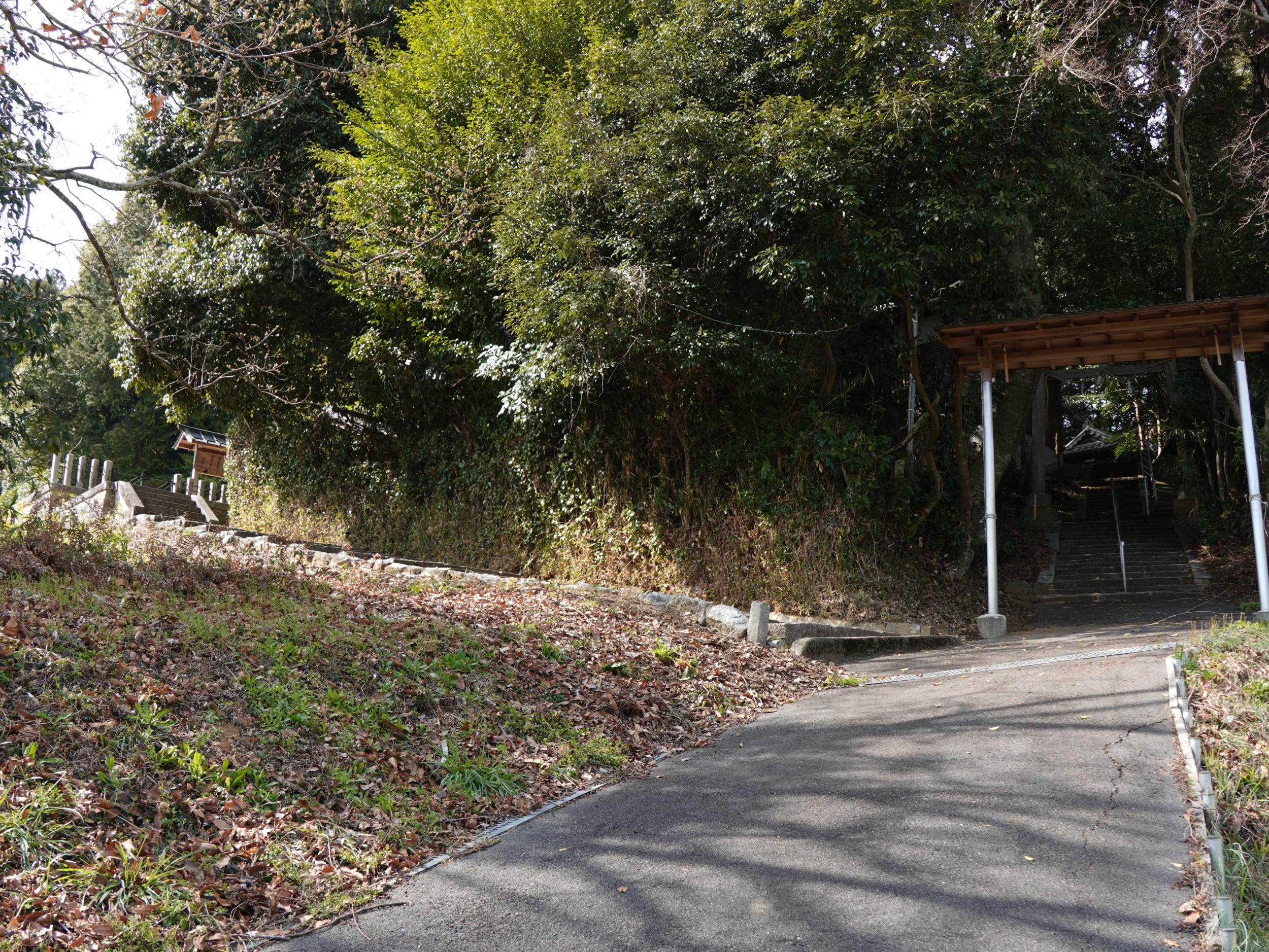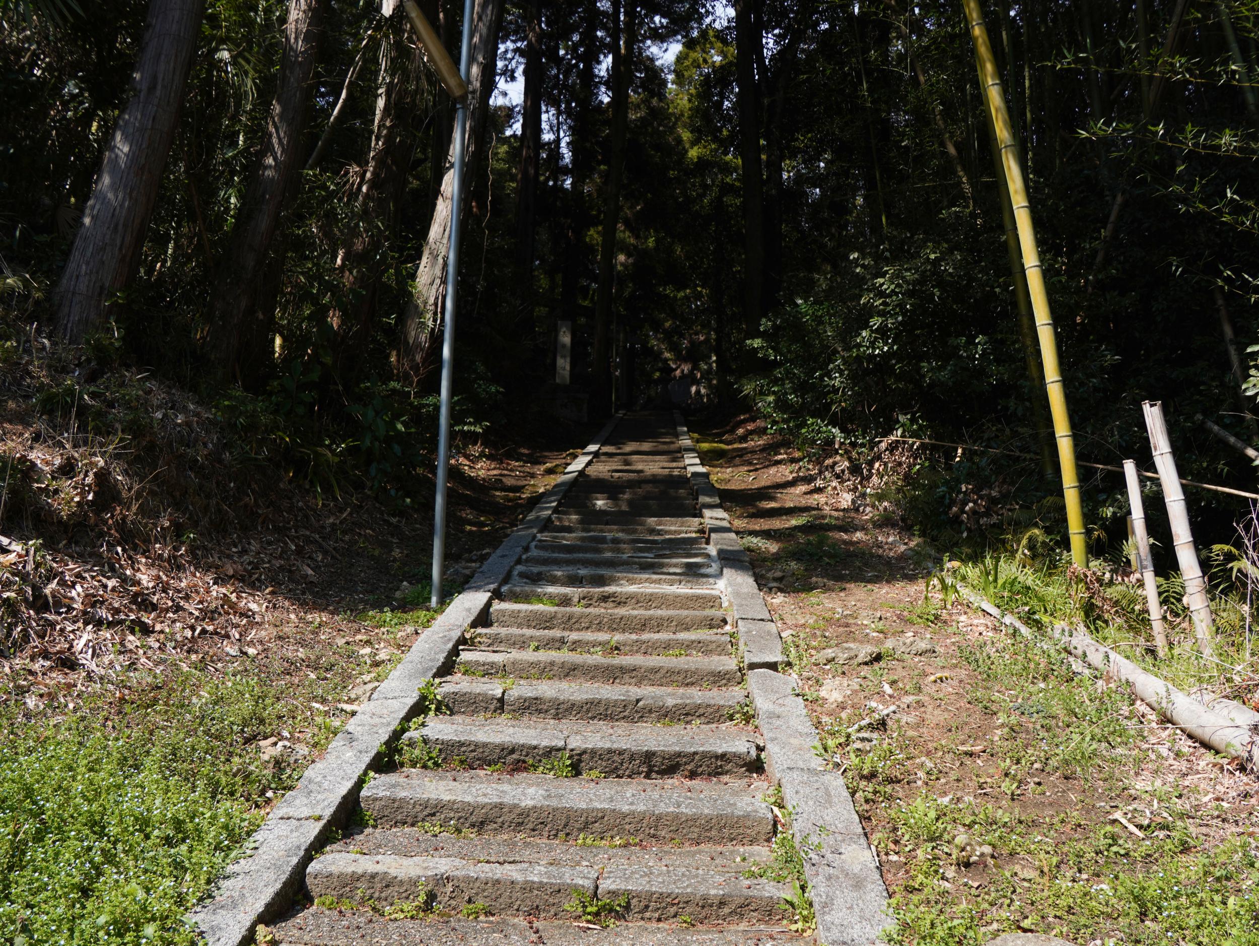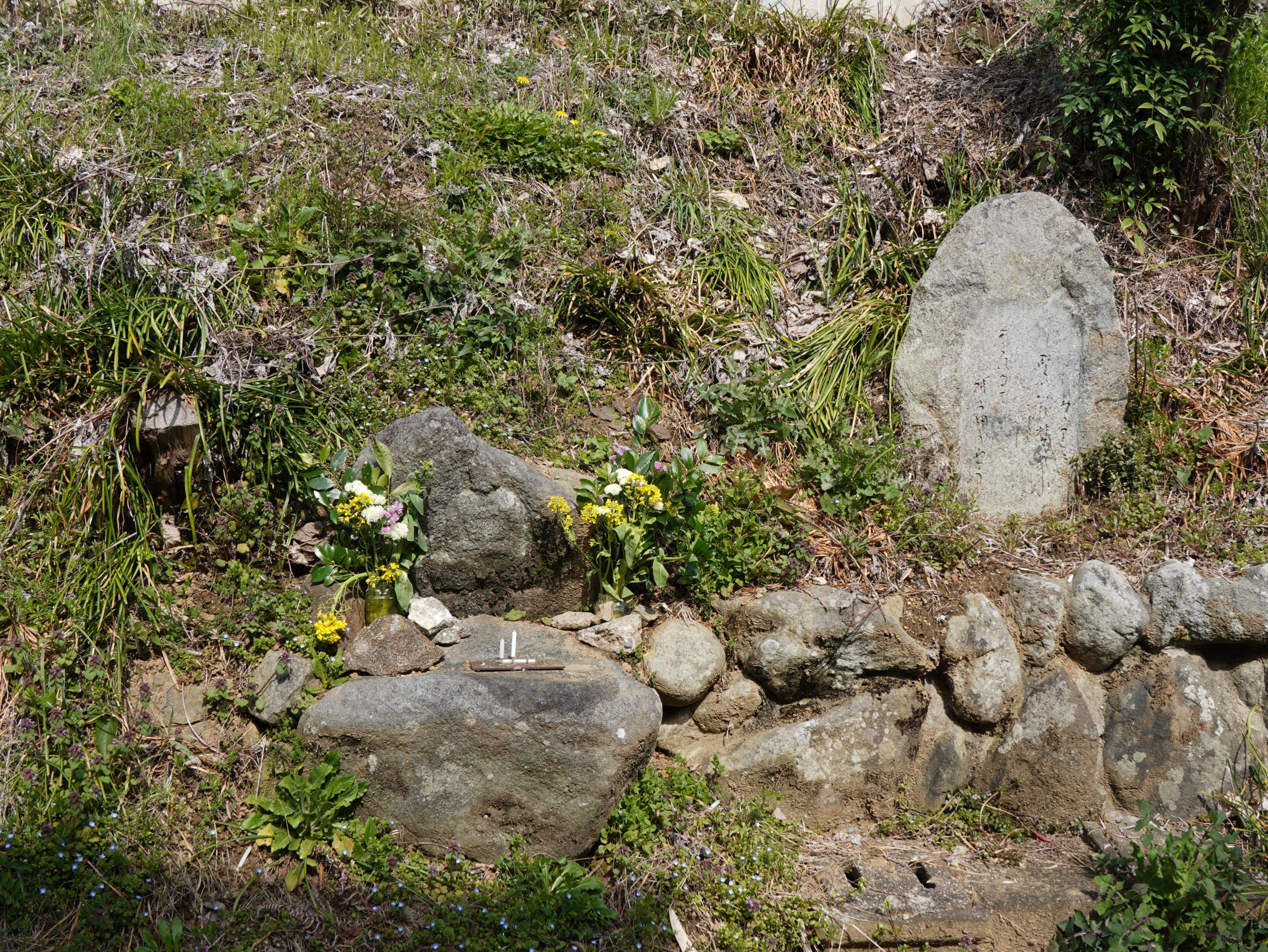 こちらも来村先生の説明で石段のある南向きではなく、踏切から上ってきた東北向きの谷に向かって位置していると分かりました。後述の岡宮天皇真弓丘陵が草壁皇子の陵墓に治定されているのは、明治時代の役人が佐田の村人に尋ねたところ、ここを「草壁さん」と呼んでいたにもかかわらず、立ち退きを命じられるのではないかとおそれ、ここではなくあっち、と答えたためという話はとても興味深い。