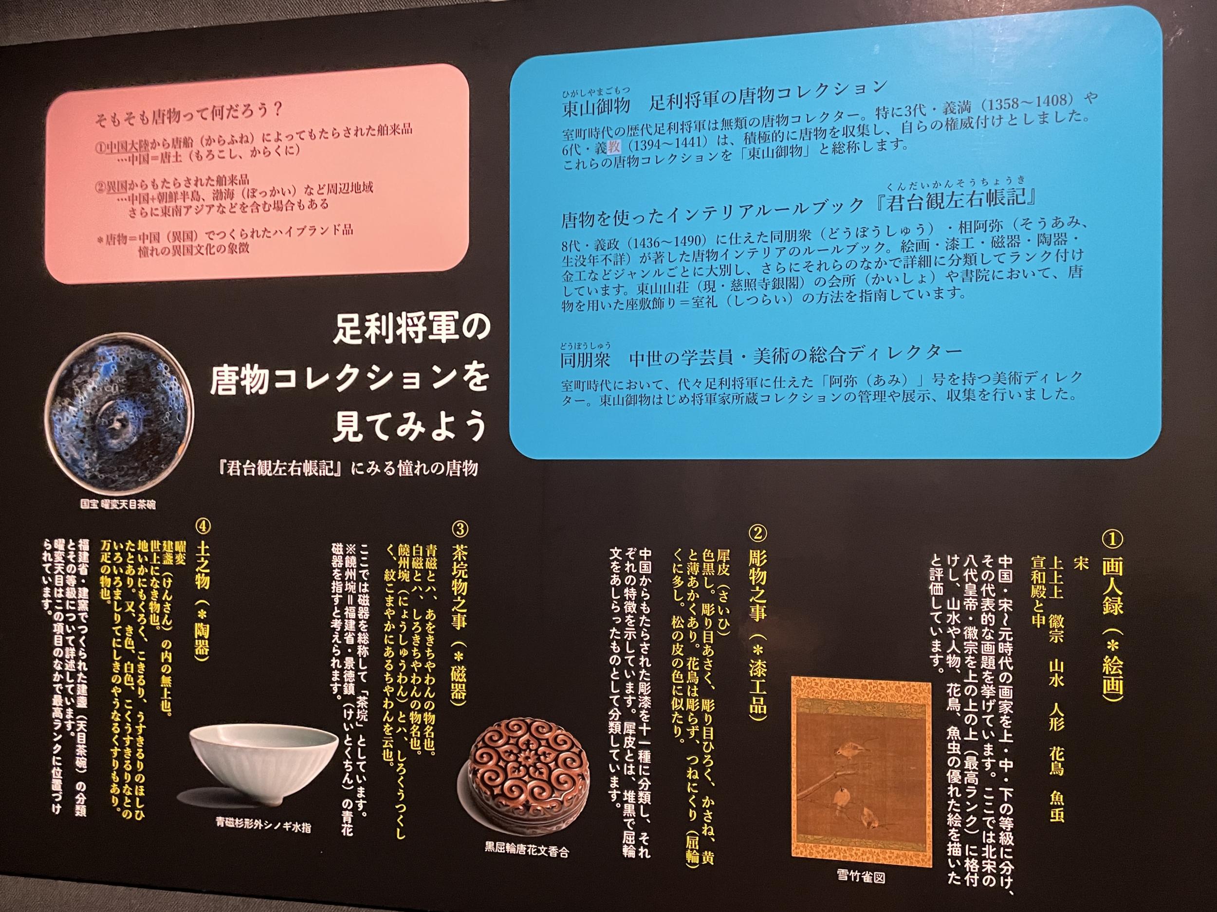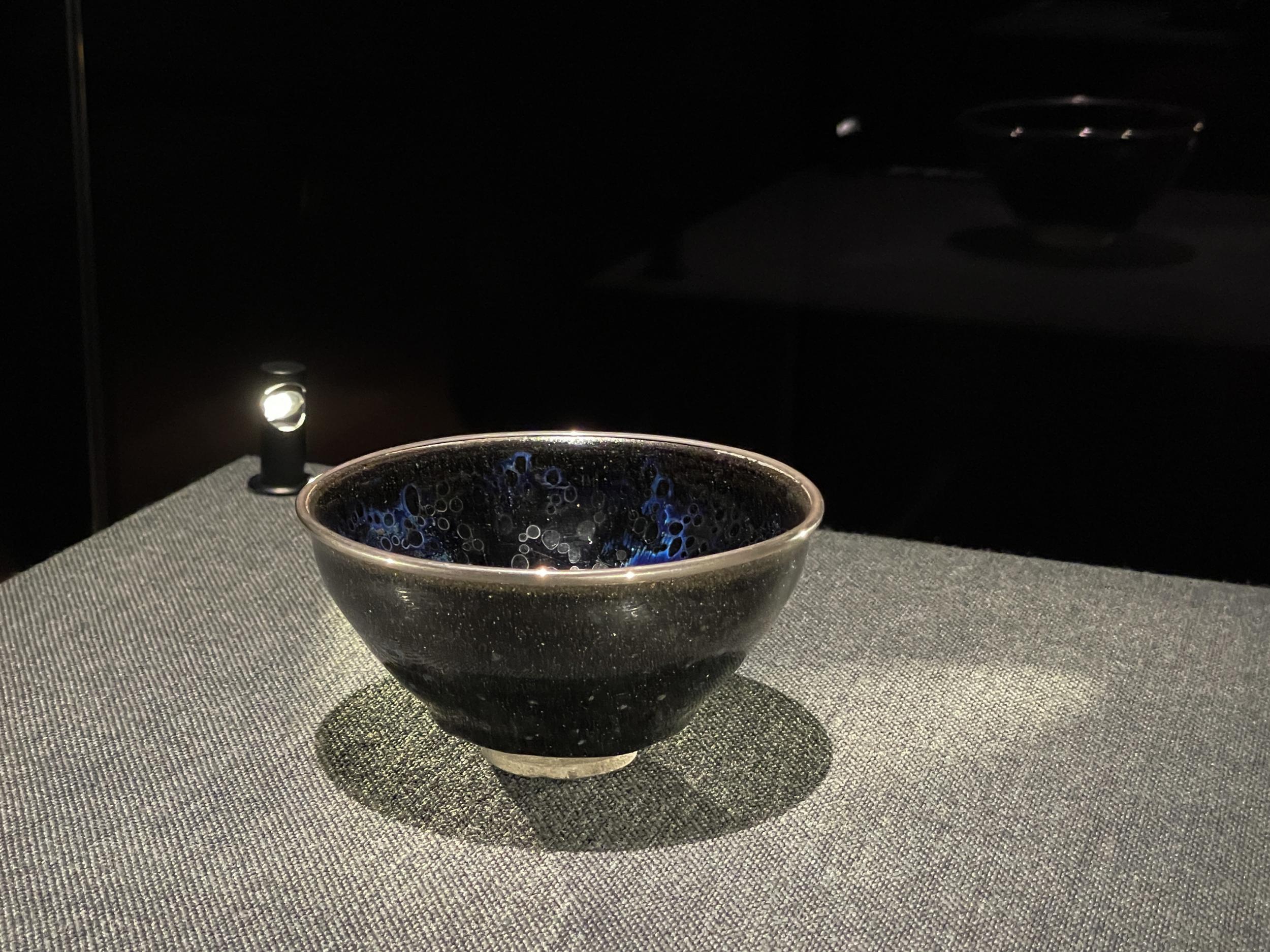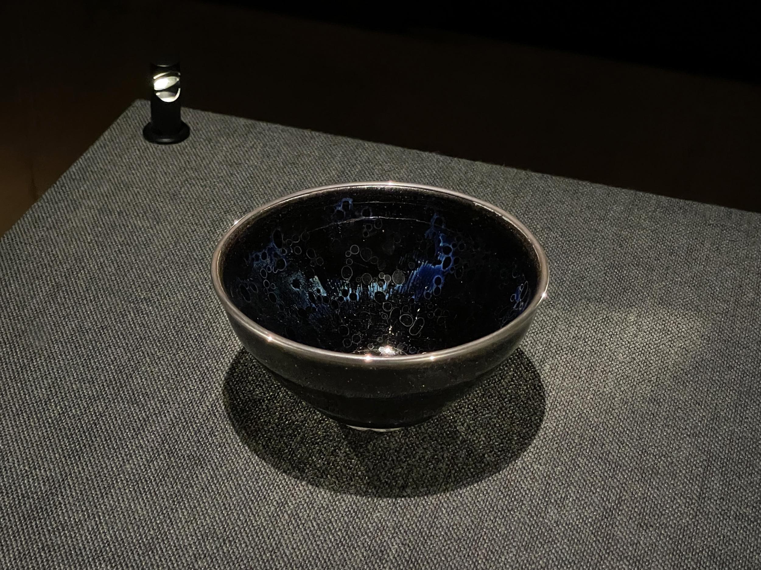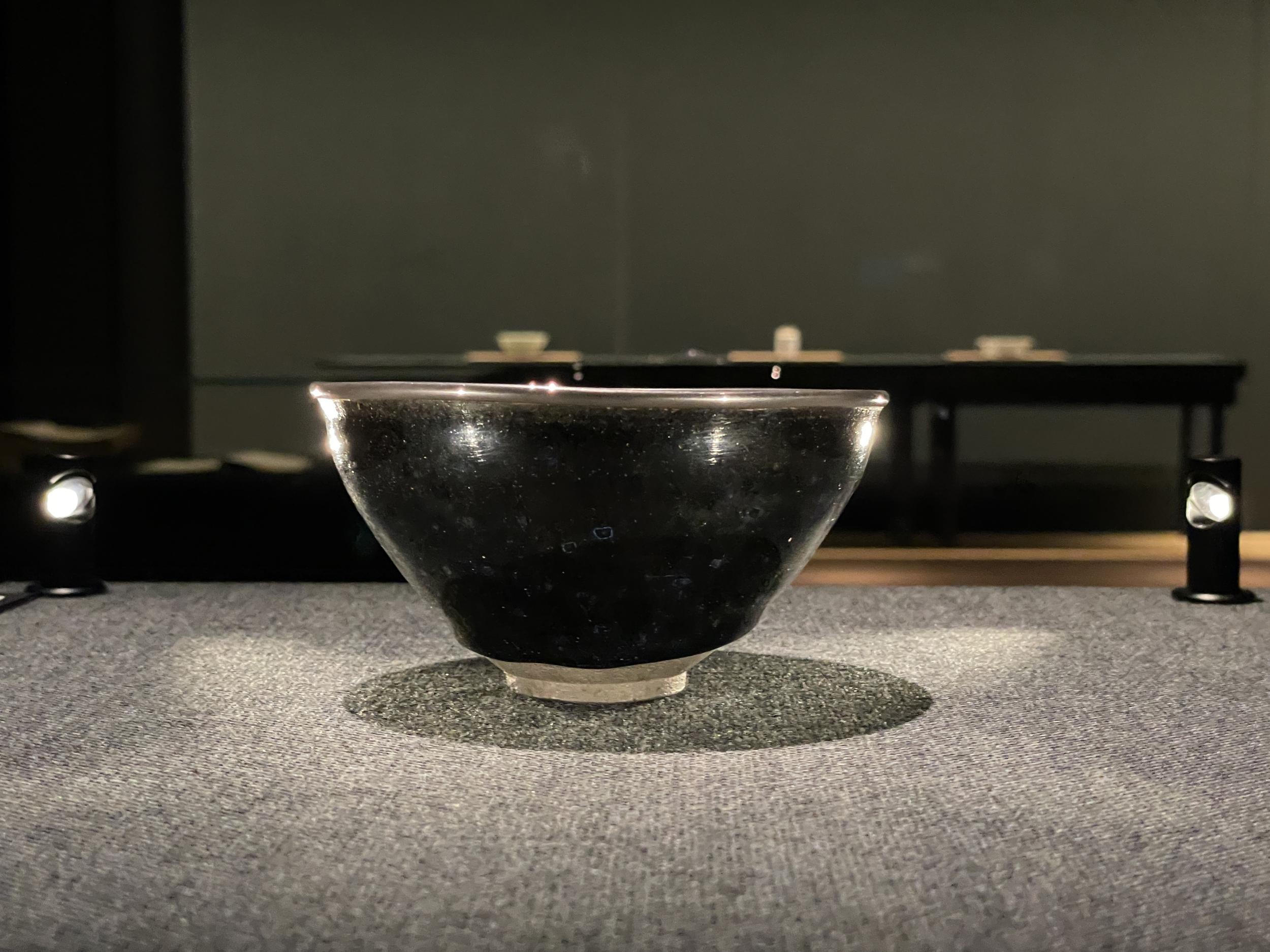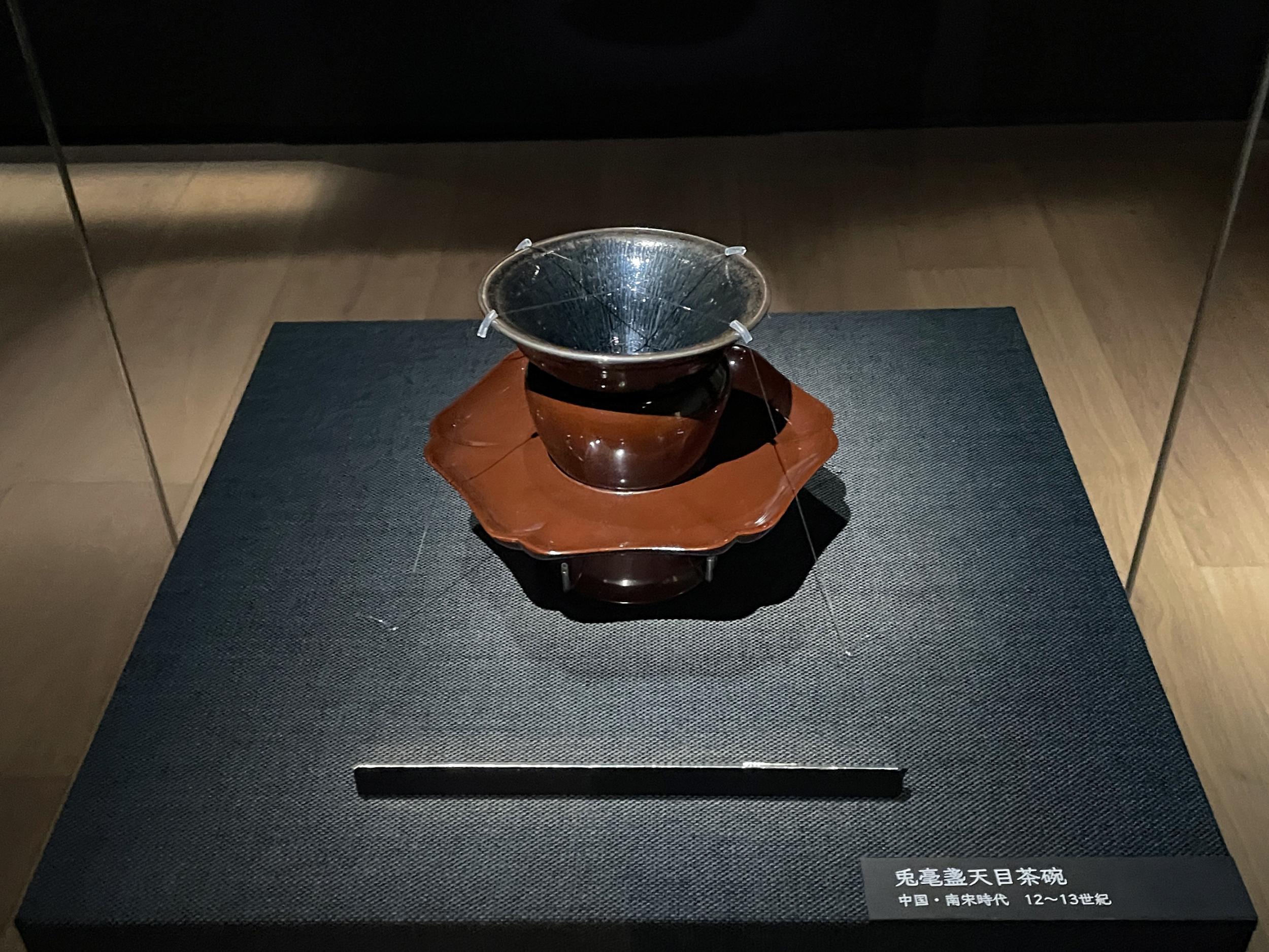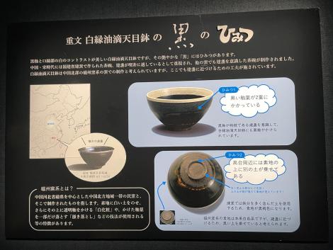 厳密には天目茶碗ではなく、高台部分に黒い土をのせて建窯で焼かれた天目茶碗である建盞を模していることがパネルで紹介されていました。
