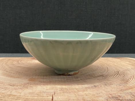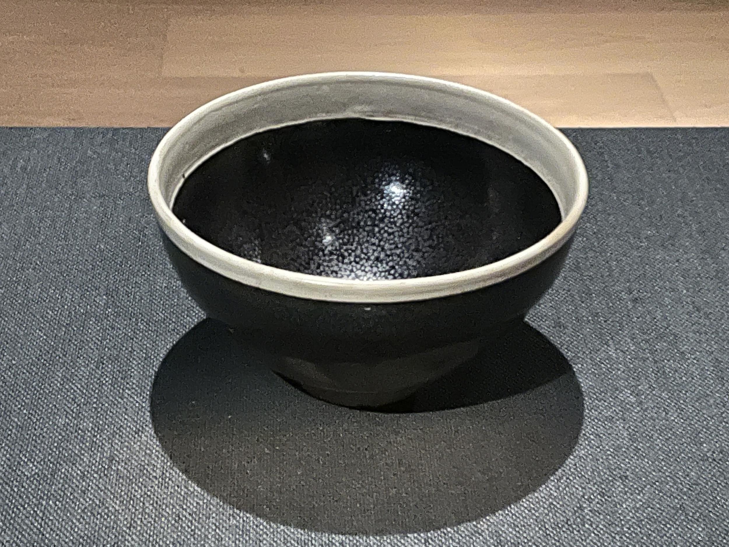 東洋陶磁美術館の油滴のない白覆輪天目とそっくりで、同じく河北省磁州窯系の窯で焼かれたもの。河北省では北方系の金王朝の時代です。白覆輪天目と異なり白縁の内側と外側で幅が違っています。