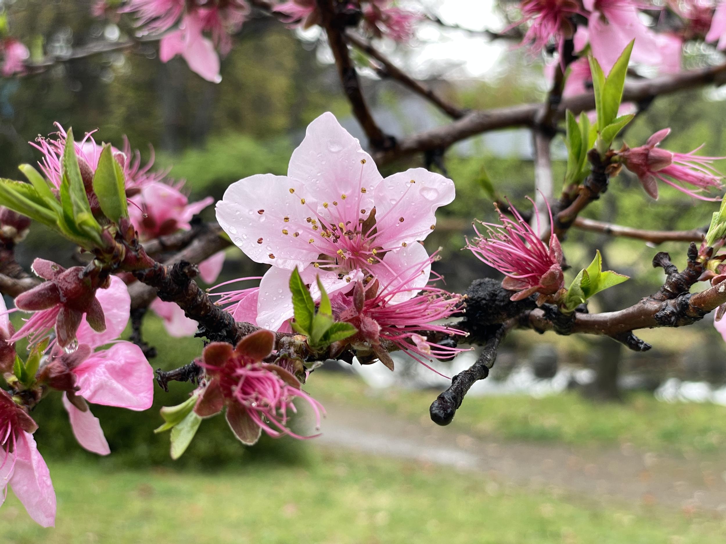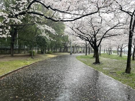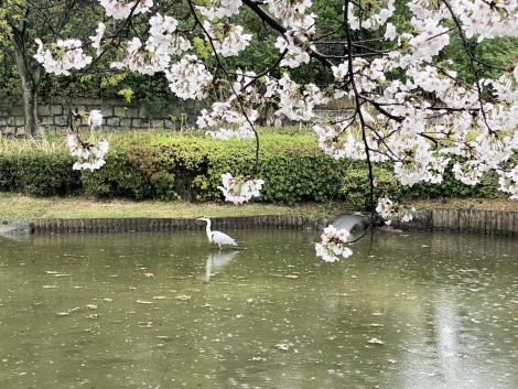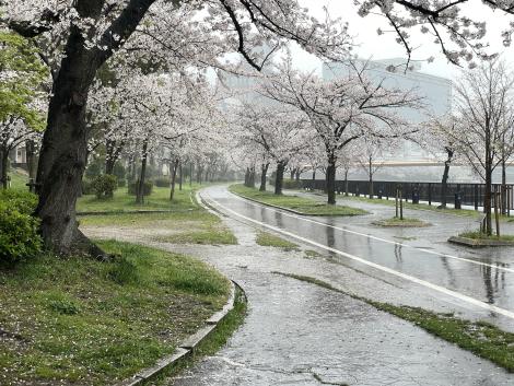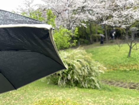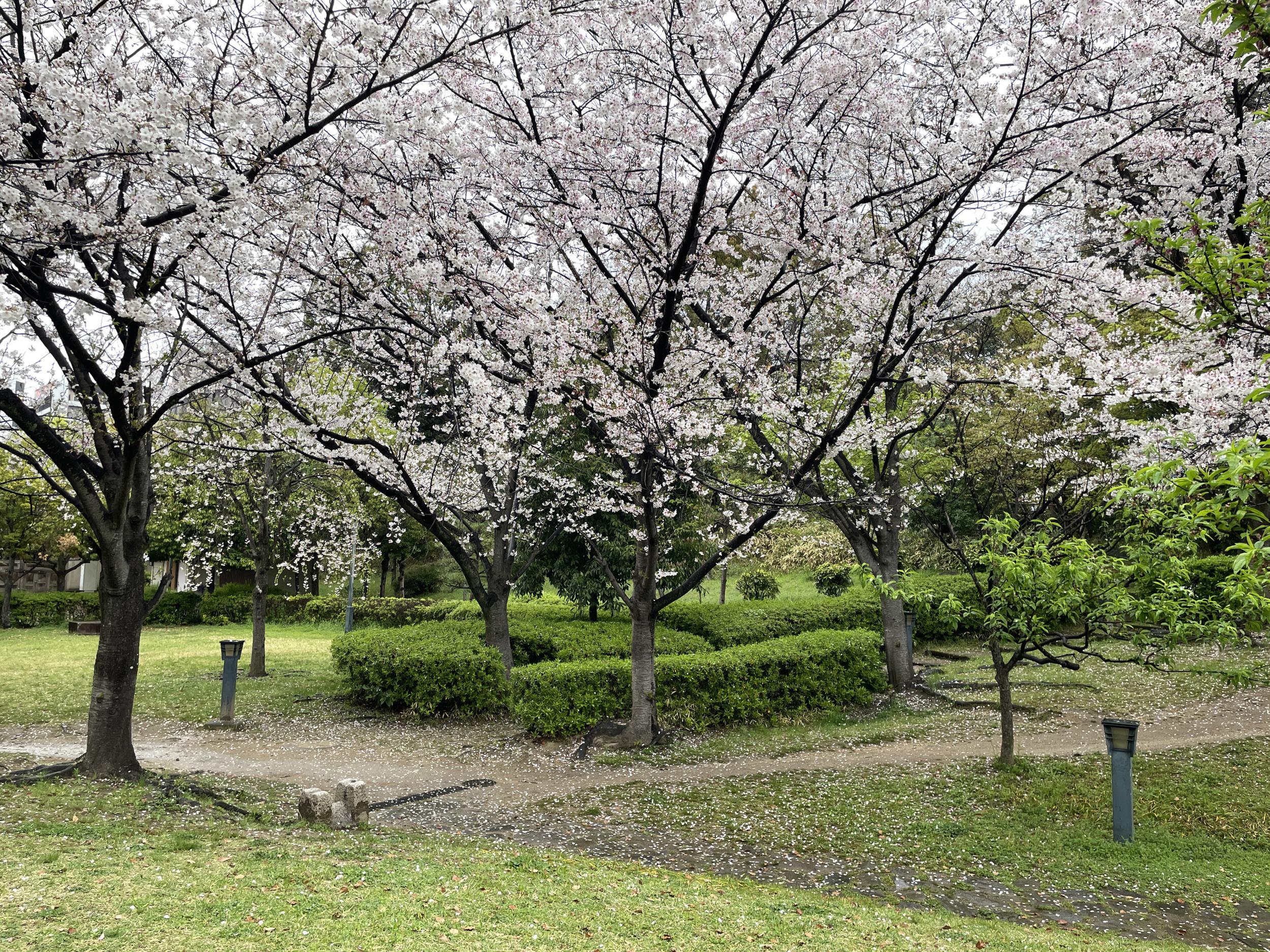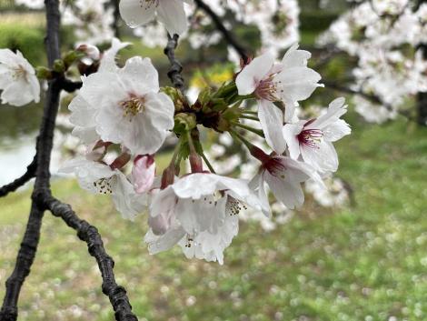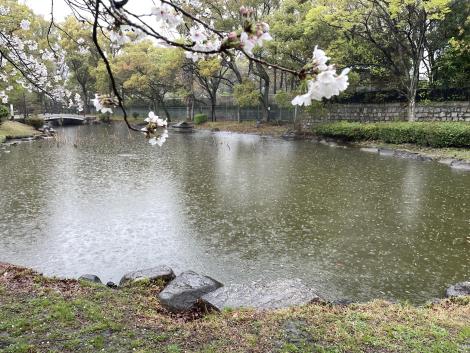 ボリュームばかりでイマイチなランチを済ませても落語会までまだ1時間ほどあるので、雨の藤田庭園を散策、桜が満開。