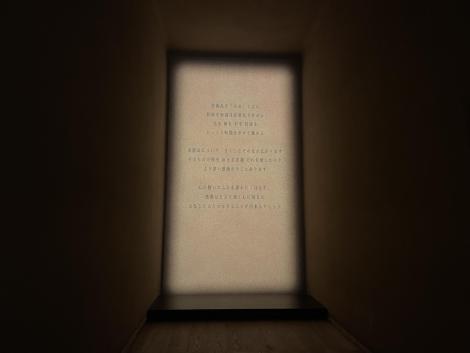 最初の扉が開くと真っ暗な中にその次の部屋への扉だけが浮かび上がります。2つ目の扉が開くとメッセージが浮かび上がります。