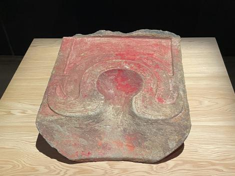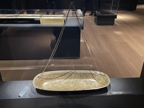 重要文化財埴製枕(はにせいまくら、古墳時代、4世紀)、は埴輪と同じ方法で作られた棺に置かれた枕。山の辺の道の中山大塚古墳北側に位置する燈籠山古墳から出土らしい。学芸員さんによるギャラリートークが始まっていて、埴製枕の周囲に人だかり。この前の美人学芸員さんじゃなくて男性学芸員さんだったので、自分は他の展示品を鑑賞。