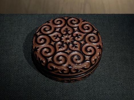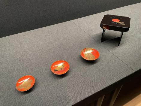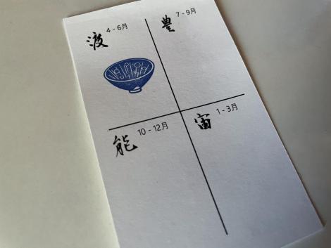 入館料を支払うとスタンプカードを渡されました。3ヶ月毎に区分けされていて、やはり3ヶ月毎に訪ねるのが正解と分かり、7月以降のテーマも既に決まっているようです。今月から始まった「渡」には曜変天目らしきスタンプ。4つ貯まると1回無料になるんですか?と尋ねるとまだ決まってないけと何か記念品がもらえるようです。5-7月で「香」のテーマが始まるはずですが、来月になると新しいスタンプカードをもらえるのか、その辺は不明です。