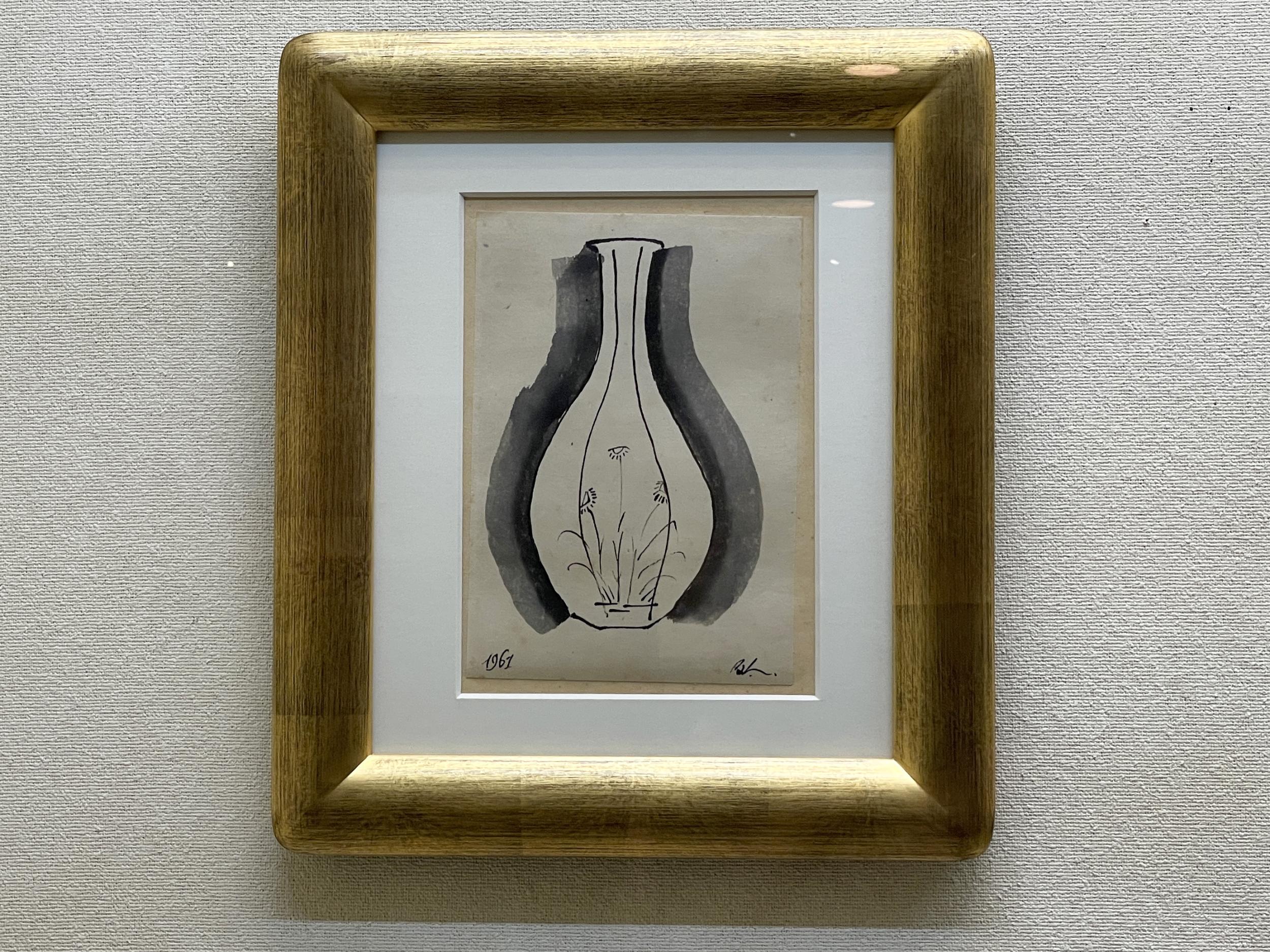 李朝秋草文瓶図(41)は高麗白磁を描いた墨絵、今日の展示で一番気に入りました。