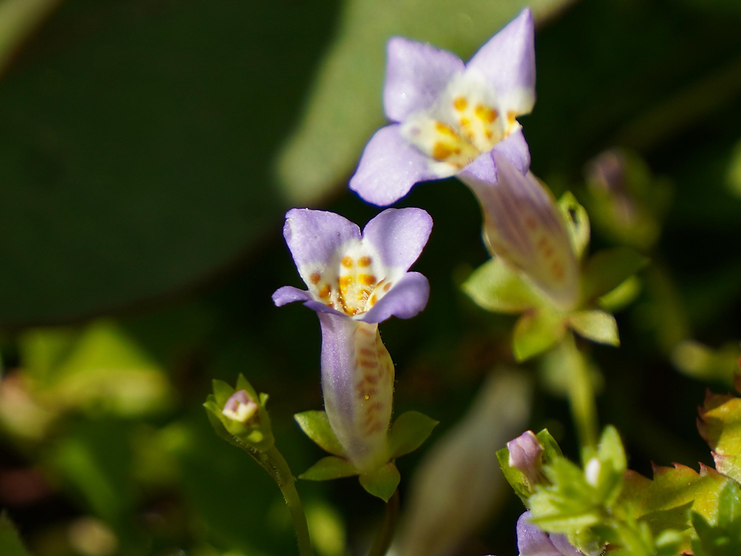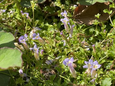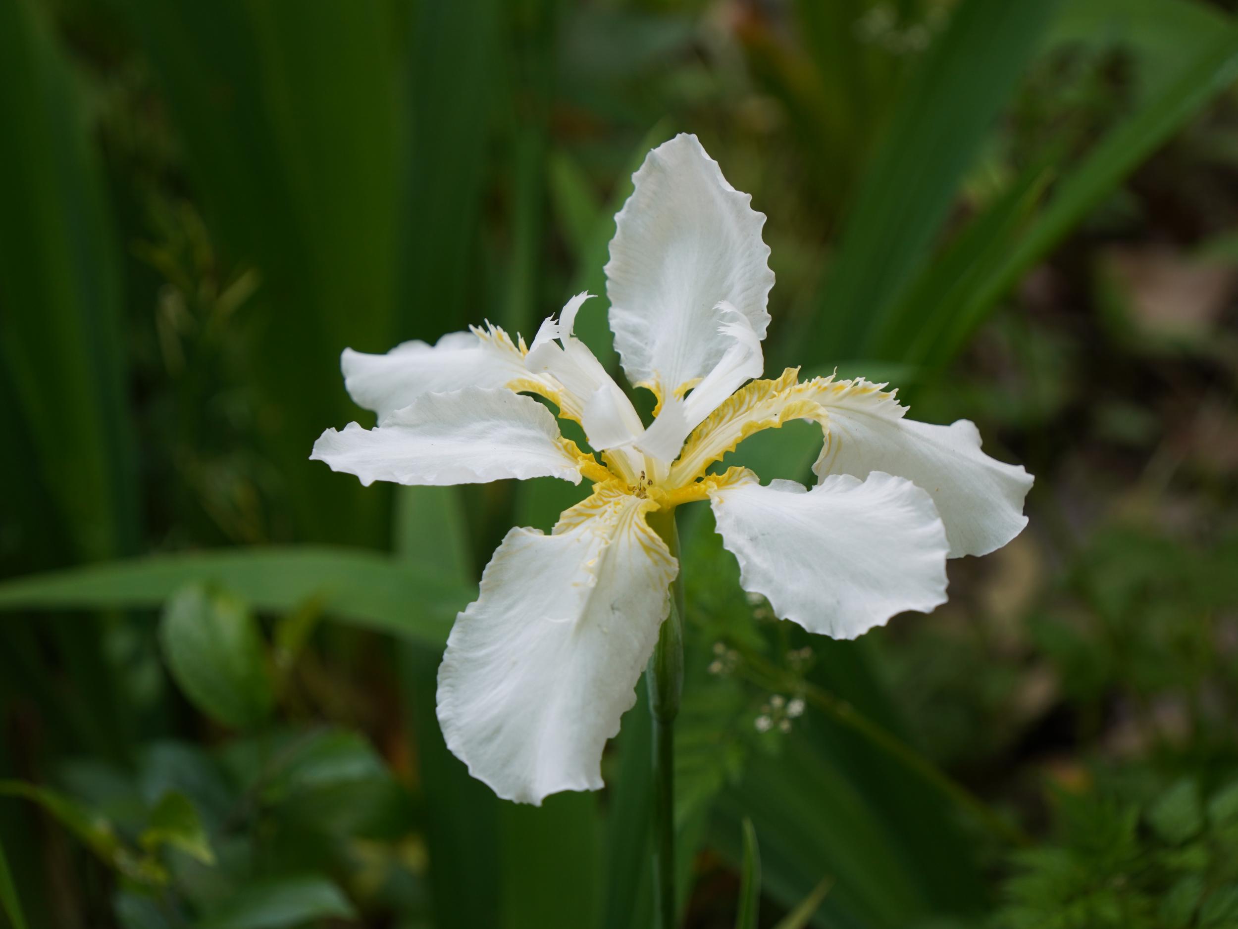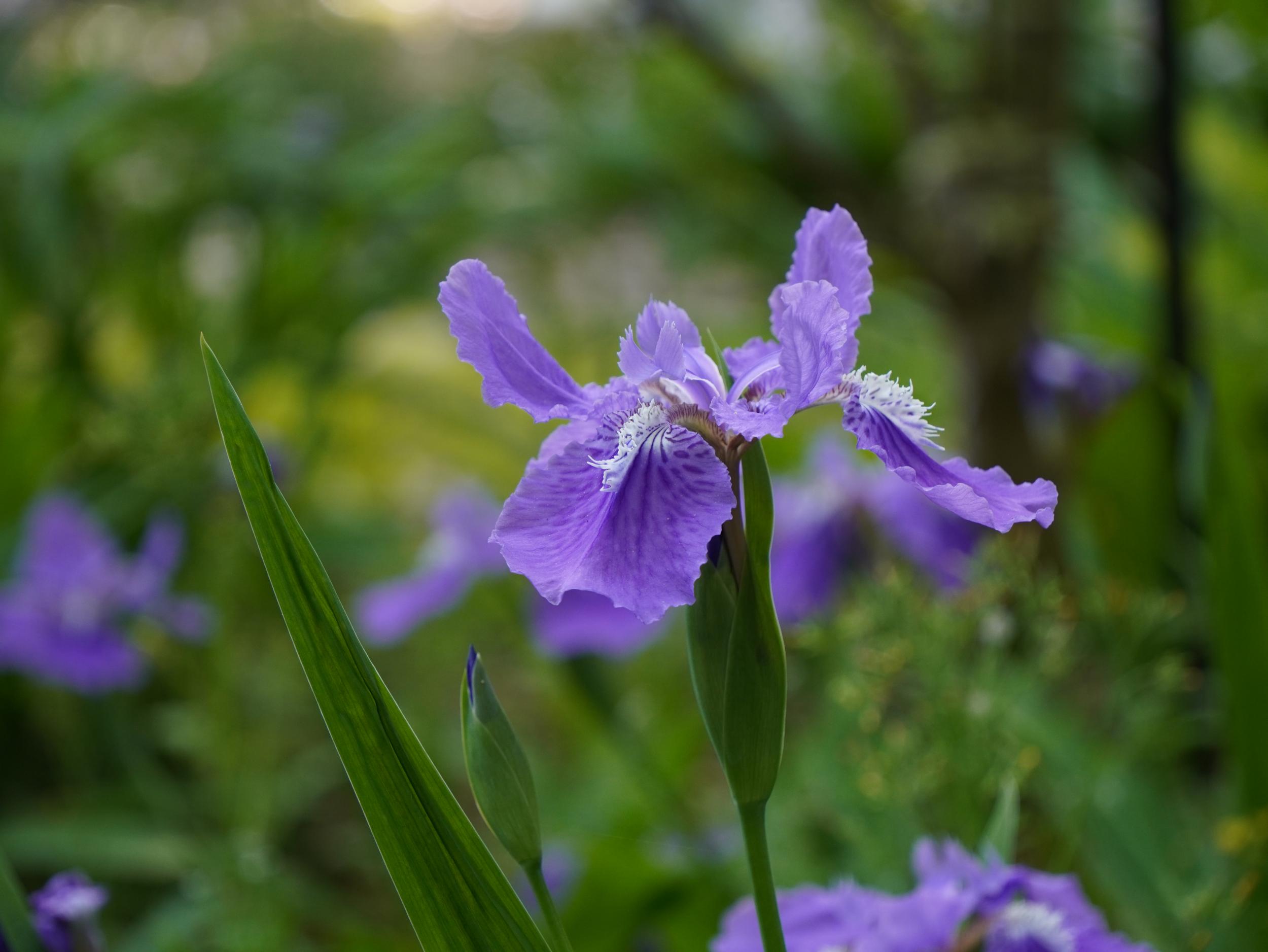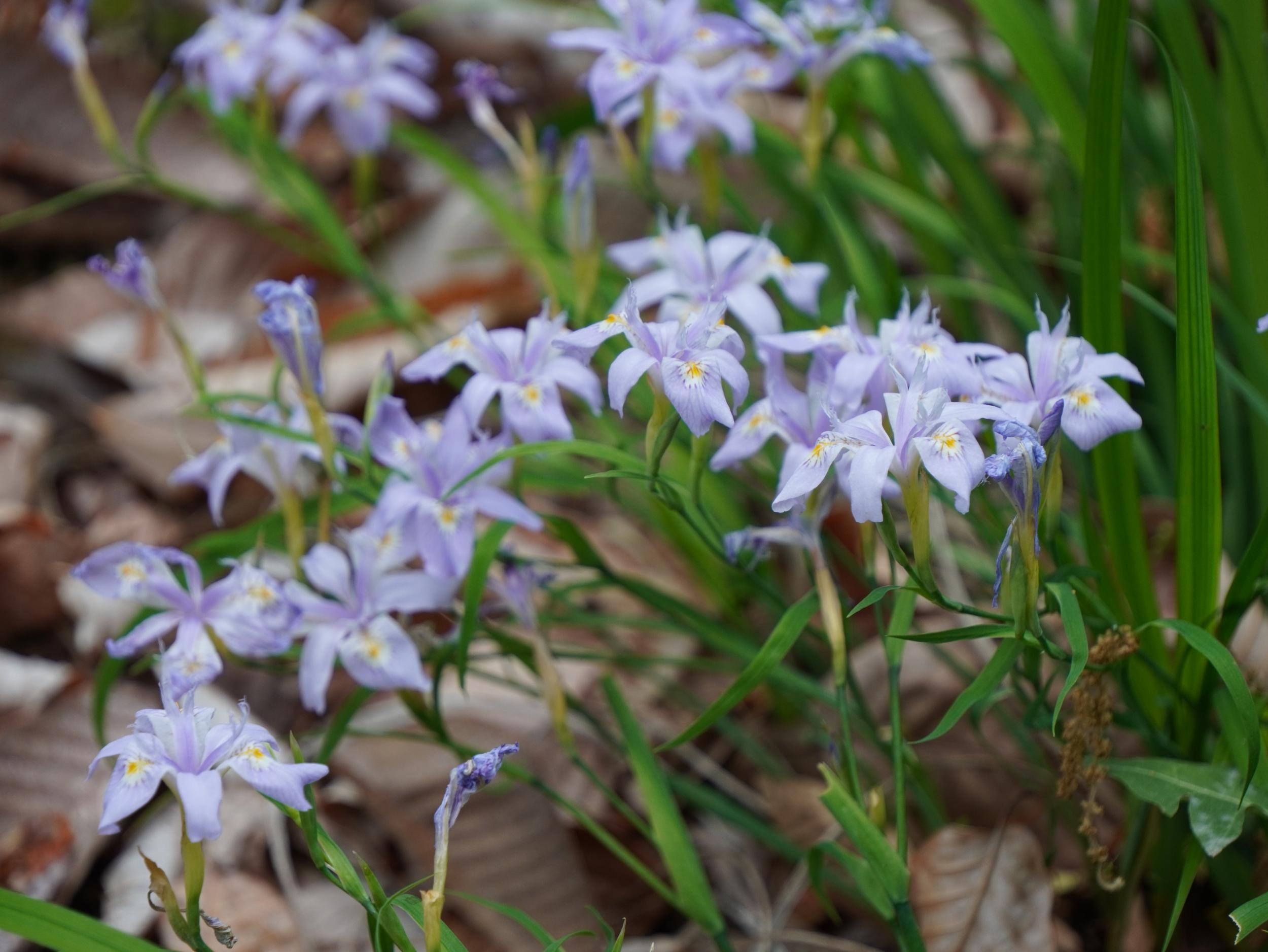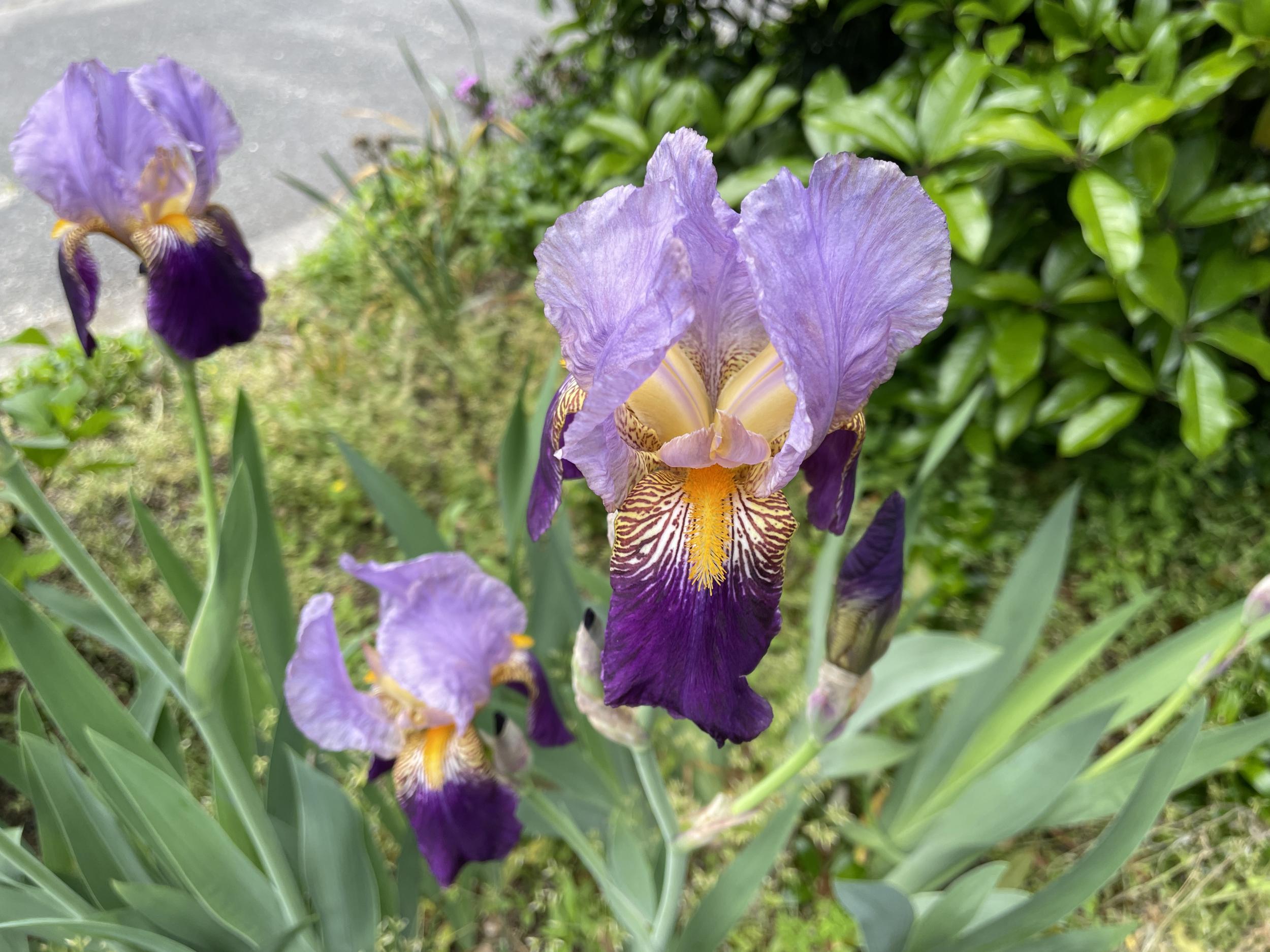 シャガと違って花びらが青いヒメシャガ、準絶滅危惧種で野生については絶滅が危惧されているらしい。