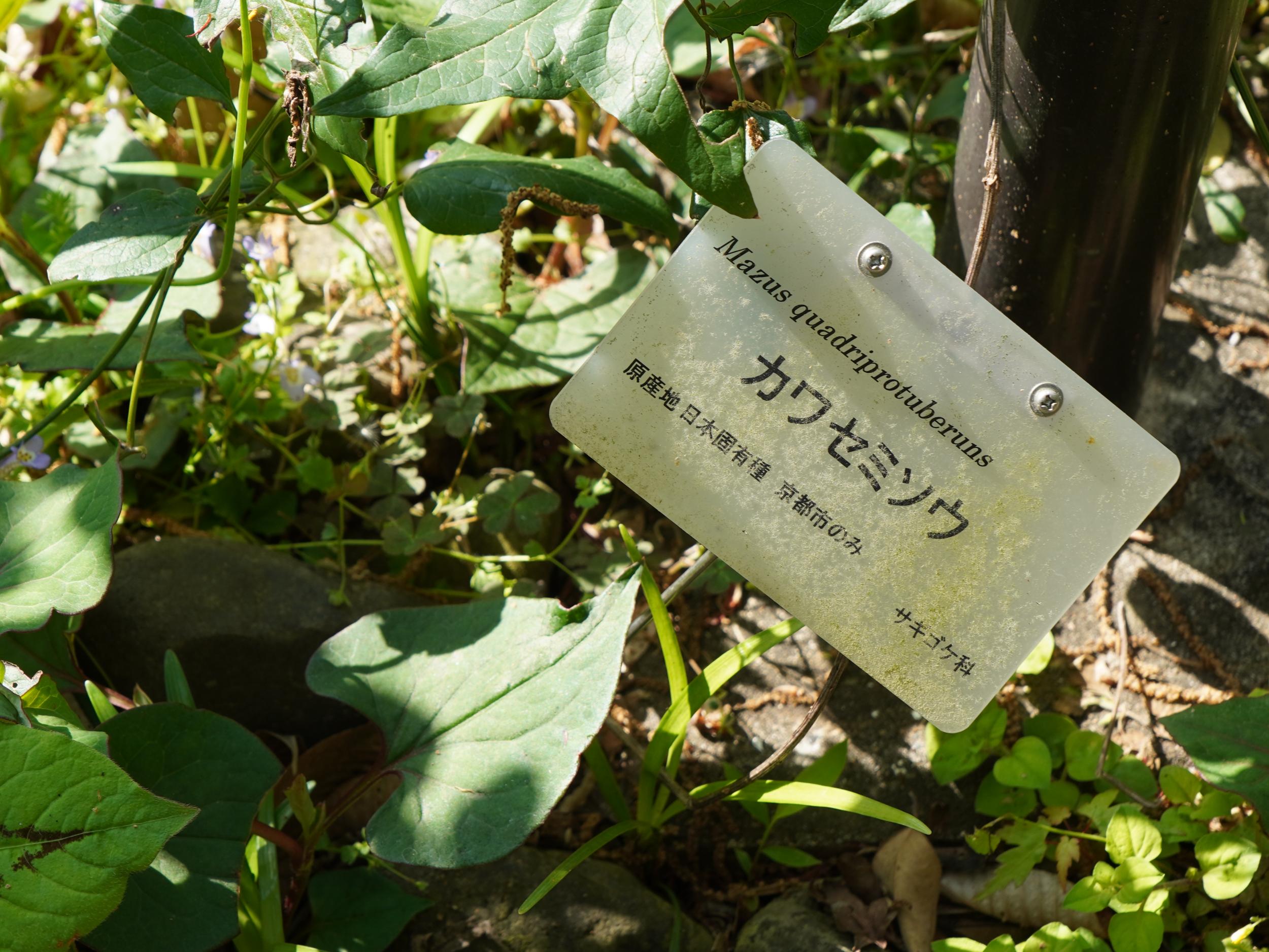 樂美術館だけだと写真が足りないのがわかっていたので、次にどこへ行こうか探していたところ、府立植物園4月24日の植物園だよりを見ると「カワセミソウ」なる初耳の花の名を見つけました。そのカワセミソウがあるはずの賀茂川門近くの絶滅危惧種園です。
