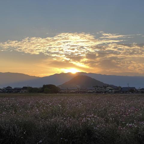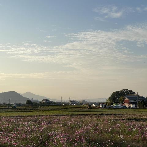 コスモス畑と畝傍山