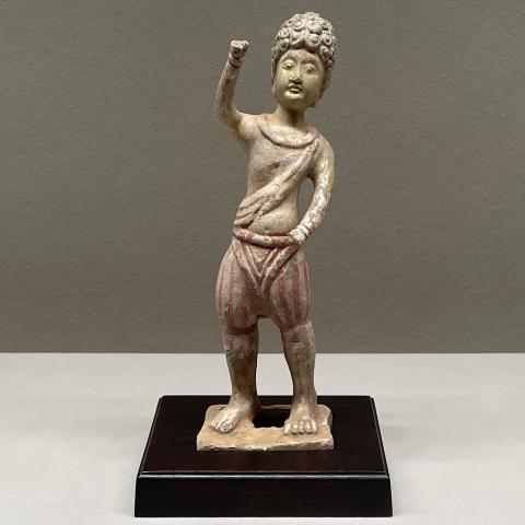 黄釉加彩巻髪俑