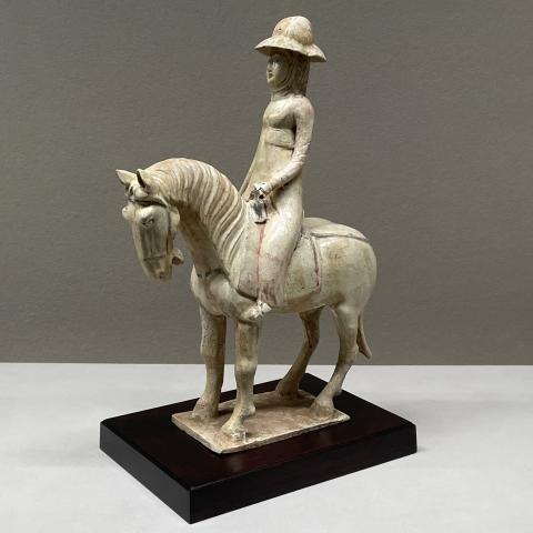 黄釉加彩騎馬女俑