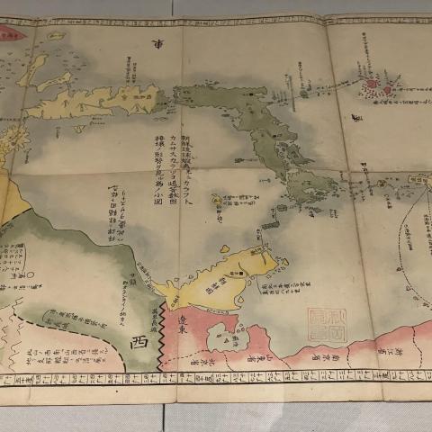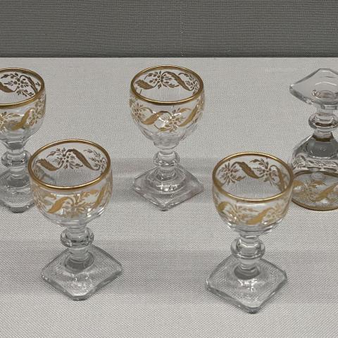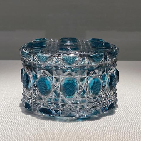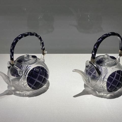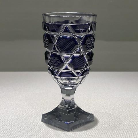 手彫り薩摩切子紫色被せ足つきガラス杯