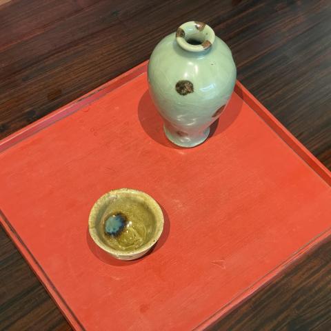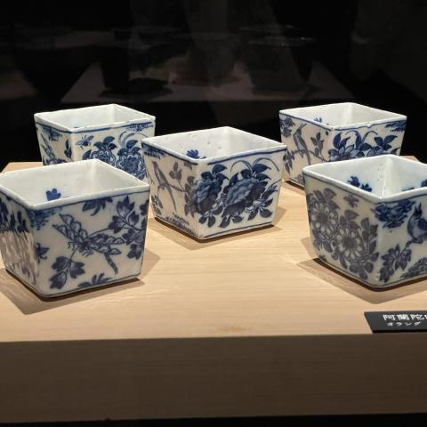 阿蘭陀四方藍画花鳥蜻蛉向付