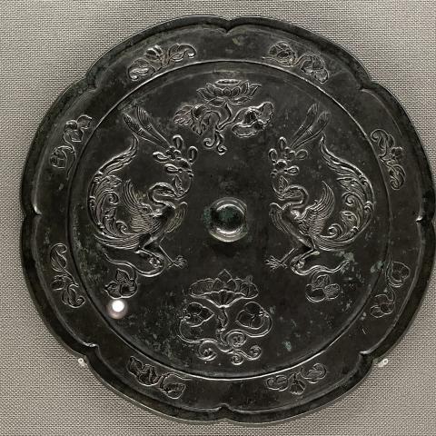 双鳳瑞花文八花鏡