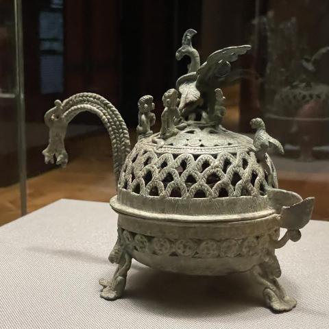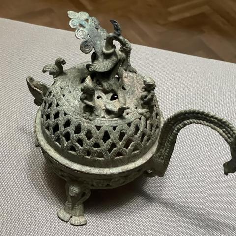 青銅人物鳳凰飾龍把香炉